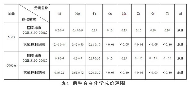 2.1 根據(jù)生產(chǎn)實(shí)踐,首先對(duì)用于實(shí)驗(yàn)的該兩種合金化學(xué)成份各元素進(jìn)行了范圍選定。