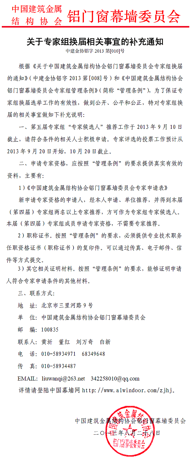 關(guān)于專家組換屆相關(guān)事宜的補(bǔ)充通知