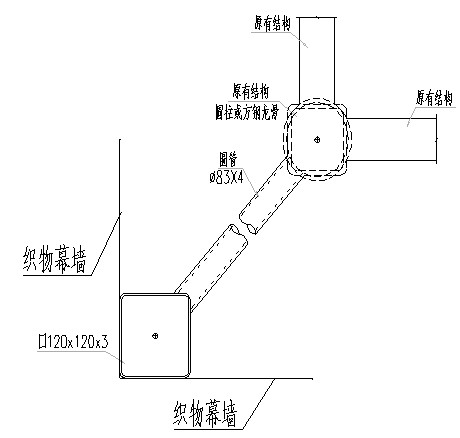 1 在幕墻凸點位置的支撐桿端部安裝圓凸形鋼支片,支片與支撐桿間用可調螺栓連接,用以調整頂桿高度,以在幕墻上形成凸點。(見圖5.2.4-1、5.2.4-2)