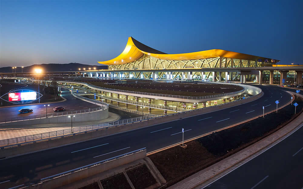 曼谷第二國際機場年設計旅客吞吐量4500萬,遠景規劃目標9000萬;每小時飛機起落架次76次,遠景規劃目標112次;年設計貨物吞吐量3000萬噸,遠景規劃目標6000萬噸;航站樓東西兩側各設置一條跑道,東跑道長4000米,西跑道長3700米,遠景規劃目標共設置跑道4條;控制塔臺高度132米,停車位15677個。航站樓主體結構采用混凝土及大跨度鋼結構相結合方式,建筑高度42.85米,長444米,寬111米,建筑面積182000平方米。地下二層,負一層為貨物與行李分檢區,負二層為地鐵出入口及地鐵站;地上三層,局部六層,為旅客出發及到達層,同時具備辦公、餐飲、商場等功能。連接廊與指廊主體結構同樣采用混凝土及大跨度鋼結構相結合方式,建筑高度25米,總長3133米,寬40.05米,建筑面積381000平方米。