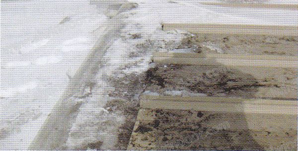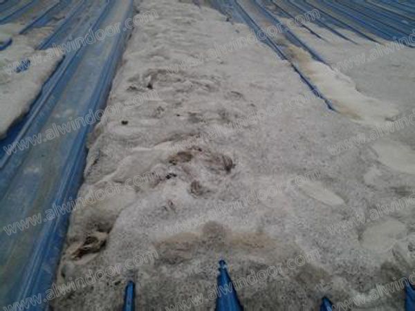 例如,我國北方地區,冬季金屬屋面上部和天溝內大量積雪,在春季積雪融化成水,會直接浸泡屋面與天溝(如下圖1一3);