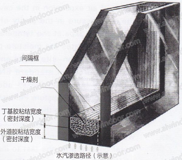 圖1 中空玻璃粘結密封結構及滲透路徑
