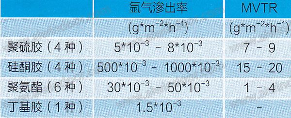 對(duì)于密封膠的氣密性評(píng)估(參見(jiàn)表2),(此方法通過(guò)測(cè)量氣體在一定時(shí)間內(nèi)透過(guò)既定厚度和尺寸的膠層的值進(jìn)行評(píng)估),在選擇最適宜的中空材料情況下,考慮所有其它因素對(duì)密封膠隨時(shí)間變化的影響,例如在特定的大氣和老化后的玻璃粘合性能,及機(jī)械應(yīng)力。