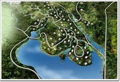 精品酒店與一個小碼頭相連,其建筑設計也體現了傳統中國韻味。由一組建筑圍合而成三面院落空間,俯瞰整體建筑如同一個“京”字,建筑風格吸取了玻璃燈籠、花窗、坡屋頂等中國傳統設計元素。另外,核心島與西側山腳通過公路橋梁相連,未來游客可通過陸路、水路上島游覽。