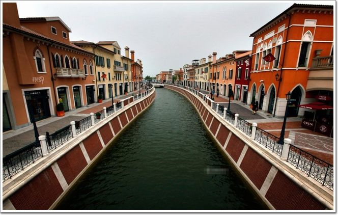 在復制經典建筑司空見慣后,一些地方開始大手筆地復制名城名鎮,試圖將建筑、自然環境和風土人情“打包移植”。圖為天津武清,一處零售名品折扣購物中心以意大利名城佛羅倫薩的面貌出現。