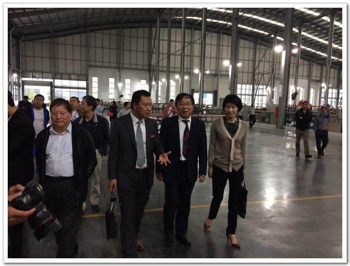 中國建筑金屬結構協會副秘書長兼鋁門窗幕墻委員會主任 黃圻和與會代表一同參觀公司生產基地
