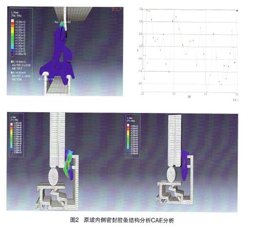 以上信息,可以定量化地判定產品設計方案是否滿足設計要求,對于不合格的設計方案,可結合變形過程動畫和計算變形網格圖來對原設計方案進行改良,從而得出最終的設計方案,提高了產品設計中的功能性和裝配性能。發現產品在啟閉過程中唇邊應力和拐點之間的受力變化,針對這兩個主要原因,更改方案在唇邊與支撐點的結合處進行了弱化處理,并且可對應力拐點位置做出調整,以確保應力拐點向唇邊端部移動,減少厚度較大的唇邊根部應力集中,滿足產品設計要求。通過行業產品技術提升系統門窗在設計上必須通過密封膠條的技術創新達到更好的氣密,水密,隔音,隔熱,抗風壓。同時,門窗及配套件行業企業的技術發展要基于統一技術標準下的產品差異化,構成企業的核心競爭優勢,同時也給市場提供更多更新的選擇,創新與差異化一方面是針對門窗的最終用戶,側重于產品的舒適度、人性化、安全性和智能化,另一方面是針對門窗制造商,側重于安裝的便利性、提高安裝效率、降低采購與管理成本,從而提升門窗企業的競爭力。將有限元分析技術逐漸由傳統的分析和校核擴展到優化設計,并與計算機輔助設計和輔助制造密切結合,形成了現在CAE技術的框架。