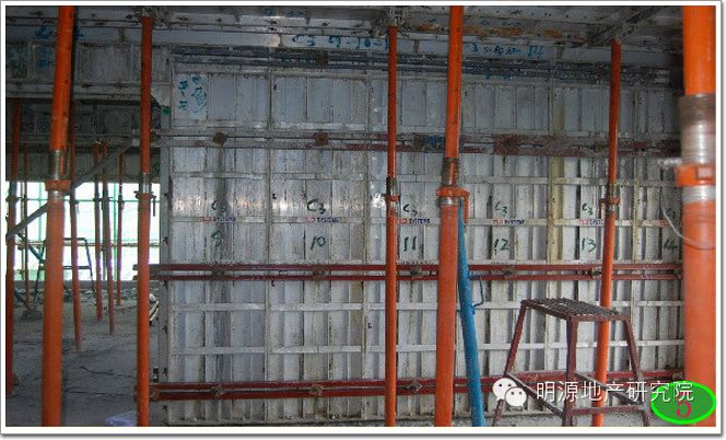 a.混凝土澆注期間至少要有兩名操作工及一名實測實量管理人員待命,檢查正在澆筑的墻柱兩邊鋁模銷子、楔子是否脫落,對拉螺栓連接是否完好。