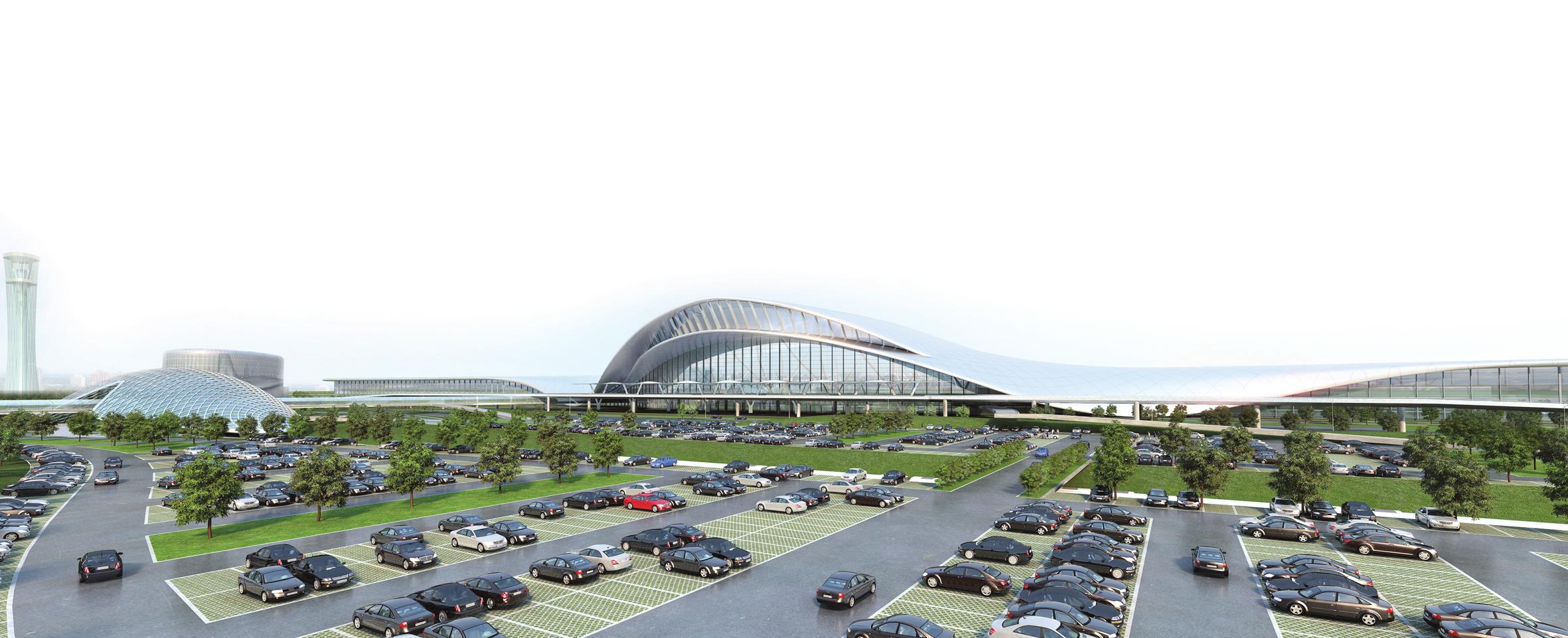 通過64組φ36、φ40、φ45豎向不銹鋼雙索,6000平米的整面幕墻被吊掛在位于主屋面檐口內的超級桁架上,三層鋼連橋穿過幕墻并在其上設置出入口。不銹鋼拉索間距為3.03米,局部穿過鋼連橋。對拉索預應力(詞條“預應力”由行業大百科提供)的控制、鋼結構的變形位移控制和異形玻璃的加工制作提出了嚴格的要求,成為航站樓施工的又一難點,其施工難度已超過首都T3航站樓和昆明新機場航站樓。