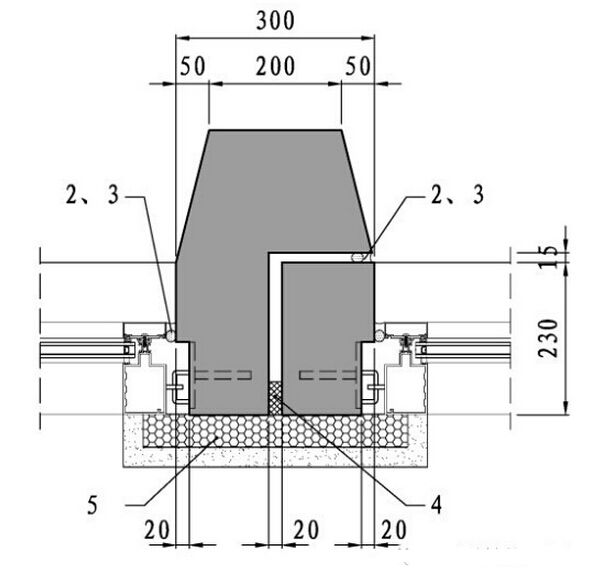 本項(xiàng)目建筑構(gòu)造設(shè)計(jì)主要包括防水、防火、保溫(詞條“保溫”由行業(yè)大百科提供)等,由于混凝土板厚度為230mm,外掛板自身的防水、防火性能優(yōu)越,關(guān)鍵是做好接縫防水構(gòu)造、節(jié)點(diǎn)防火和層間防火構(gòu)造,具體做法如下: