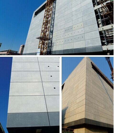 該項(xiàng)目建筑方案的外飾面效果初期考慮石材和清水混凝土兩種風(fēng)格,經(jīng)過(guò)調(diào)研和方案比較,業(yè)主最終確認(rèn)采用清水混凝土為實(shí)施方案。
