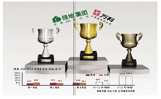 2014年初,綠地提出了2400億銷售目標希望超越萬科(專題閱讀)做“新一哥”,兩公司在11月底齊頭并進,雙方12月將繼續“血拼”爭奪老大位置,孰勝孰負難以預測,萬科綠地銷售老大之爭貫穿2014年一整年。