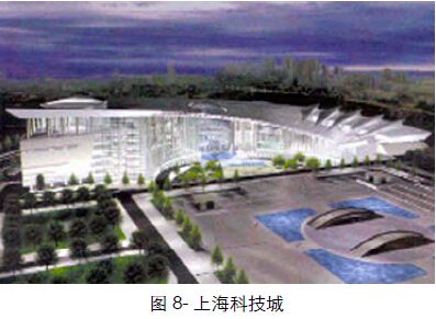 說到幕墻工程,也不能不提到上海科技城。上海科技城位于上海市浦東新區世紀大道東端,浦東行政中心的南側,位置顯要。項目占地近7 萬平方米,總建筑面積9 萬m2,該建筑的幕墻工程主要有以下幾部分組成:金屬板屋面、玻璃大堂球體、兩側外墻玻璃和石材幕墻等。科技城的整個設計方案極具現代理念。它以轉合的弧形平面,螺旋上升立體為主體,覆蓋在一片由西向東,緩緩上升的巨形翼狀屋頂之下,高度為10~49m。盤旋上升的巨型扇形屋面外觀簡潔流暢,配以銀色噴涂鋁合金板塊,以扇形放射性分割,營造出巨翼起飛的動感和力度。中央大堂的卵型大球體是一個三軸長度分別為68m、50m和42m的空間橢球體,全部由空間鋁鈦合金網殼結構和通透大玻璃構成,形成一個巨型門洞式的通透空間。天光云影等自然光的直接引入和建筑物夜間的人工照明,使科技館盡顯卵型大堂殼體的晶瑩剔透。而這個橢球體就是用2356 塊不等邊三角形中空鋼化玻璃、3337根桿件,和1183 塊節點板編織出來的,成為科技城龐大建筑物中一顆耀眼的明珠。