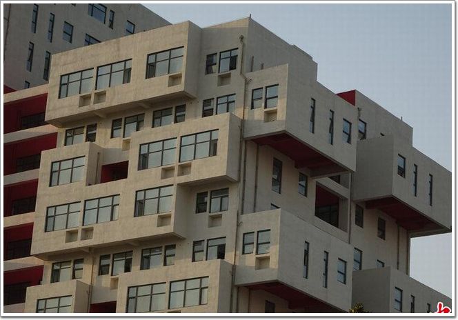近日,河南省鄭州市,鄭州經濟開發區的“財富天階”近日落成,這個由三幢樓組成的建筑群,樓體外墻幾乎每層都有不同的凸起或凹進,外墻面參差不齊,看上去像游戲中的“俄羅斯方塊”。