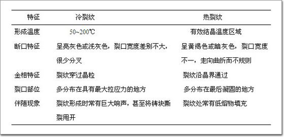 在生產(chǎn)過(guò)程中一般不存在純粹的熱裂紋或冷裂紋,大部分都先產(chǎn)生熱裂紋,然后在冷卻過(guò)程中由熱裂紋發(fā)展成為冷裂紋。