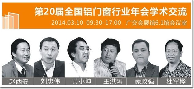 “全國鋁門窗幕墻行業年會暨鋁門窗幕墻新產品博覽會”品牌活動“2014全國門窗幕墻行業學術交流”2014年3月10日將在廣交會展館6.1館會議室隆重舉行。活動邀請到鋁門窗幕墻行業及建筑方面的專家來共同探討門窗幕墻行業的新產品、新技術,精彩演講將展示未來的門窗幕墻發展方向。
