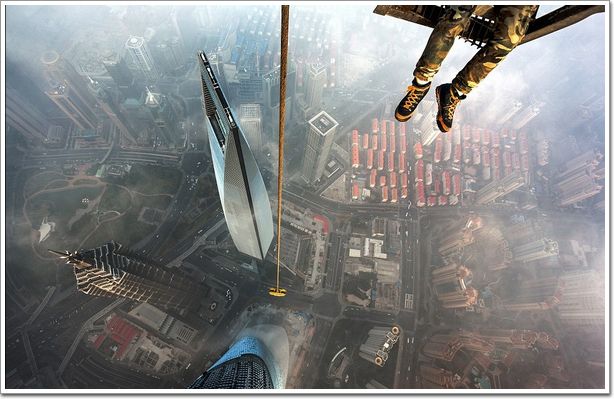 去年3月,兩人和朋友躲過埃及金字塔警衛,徒手攀至高達481英尺的吉薩大金字塔頂并拍下金字塔群的照片,引起一片嘩然。而從最新放出的視頻來看,Vadim Makhorov和Vitaliy Raskalov兩人再次挑戰禁區,不但躲過安保翻墻進入上海中心大廈在建工地,還不達最高不罷休,在未系安全繩的情況下爬上樓頂塔吊,并拍下云霧中的上海。