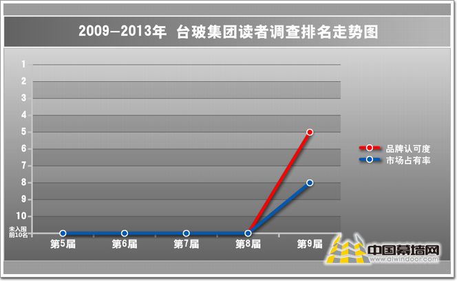 圖6:2009-2013年佛山市中南玻璃有限公司讀者調查排名走勢圖