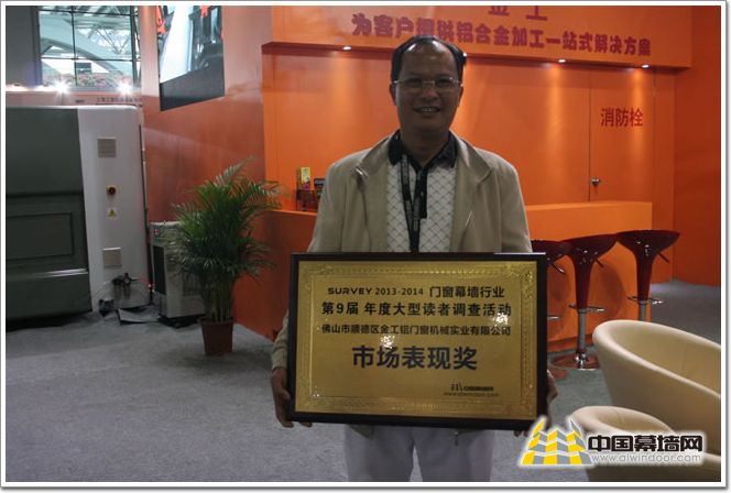 佛山市順德區金工鋁門窗機械實業有限公司榮獲第九屆中國幕墻網大型讀者調查活動最佳市場表現前二名