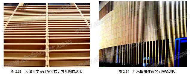 新型遮陽板也是組成幕墻新穎手法的一部分。圖2.26`~圖2.34是幾個典型的實例。