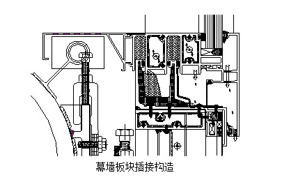 上下兩層幕墻板塊插接構造主要吸收在重力荷載、風荷載、地震作用下幕墻板塊鋁框與支撐結構環梁間的相對變形,溫度作用下幕墻鋼吊桿與鋁框熱膨脹系數差異引起相對變形,以及幕墻加工、安裝時產生的誤差。
