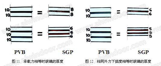 SGP夾層玻璃作為等厚度單片玻璃整體工作;PVB夾層玻璃接近于兩片單獨的玻璃疊加。