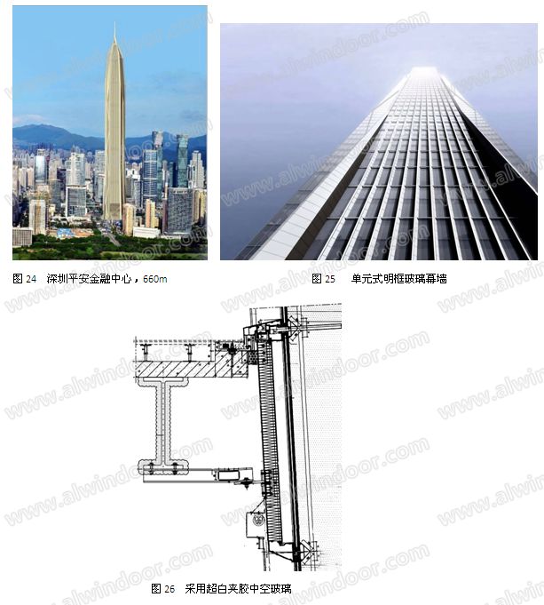 深圳平安金融中心高度660m,玻璃幕墻高度590m(圖24、圖25)。明框,單元式。