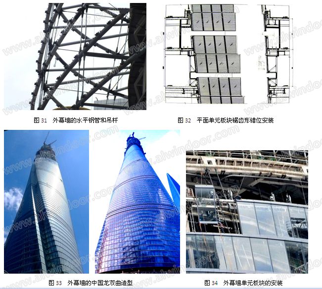 上海中心127層,高度632m,外形為螺旋上升的中國龍。玻璃幕墻由內幕墻和外幕 墻組成(圖27~圖29)。