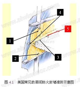 對比中國的建筑幕墻防火構造設計,美國常用的幕墻防火隔斷系統的功能盡管是一樣的,但是組成方法卻有差別,但無論是何種形式, 都是為了保證系統完整性以及盡可能多的提供逃生時間。首先應當說明的是,在美國規范中,樓板以及其延伸至外墻的區域具有相同的耐火 等級,并且對于層間防火封堵的最小高度也都有規定,只是如果有淋水裝置存在的情況下,對層間防火封堵的最小高度允許有特殊情況存在 ,另外,層間防火封堵的材料和系統必須經過專業的試驗檢測,這些對于建筑幕墻層間防火封堵的規范都是強制性執行的,因此,無論在設 計上還是施工上,都應當盡量保證其功能性的實現。