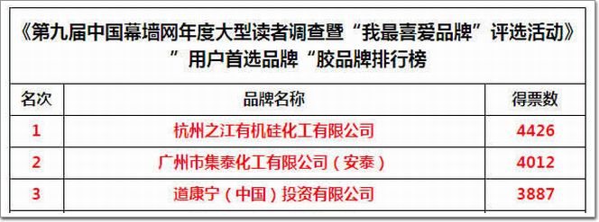 有勢(shì)力的企業(yè)和優(yōu)秀的品牌還很多,比如鄭州中原、集泰化工(安泰)、成都硅寶、廣東新展等企業(yè)都在調(diào)查中得到了讀者廣泛關(guān)注和積極支持。更多企業(yè)排名情況,請(qǐng)?jiān)L問 “2013-2014年度,“膠行業(yè)”——我最喜愛品牌讀者調(diào)查活動(dòng)(用戶首選品牌/最佳市場表現(xiàn))排名”