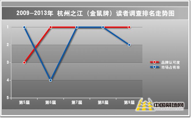 從最近五年的調(diào)查活動(dòng)來看(見圖3),杭州之江有機(jī)硅化工有限公司在讀者票選中只有第6屆調(diào)查活動(dòng)中未能入圍前三名,第5、7、8、9屆均名列前三名,這充分說明杭州之江在整個(gè)行業(yè)中的支持率相對(duì)其他企業(yè)來說都是比較高的。由此可見,企業(yè)在注重產(chǎn)品質(zhì)量的同時(shí),也注重品牌的宣傳。中國建筑金屬結(jié)構(gòu)協(xié)會(huì)會(huì)長姚兵先生在2014年全國鋁(詞條“鋁”由行業(yè)大百科提供)門窗幕 墻行業(yè)年會(huì)上的講話提到:“在市場經(jīng)濟(jì)環(huán)境下,具有良好品牌的產(chǎn)品和服務(wù)一定能得市場的特別青睞,其生存和發(fā)展具有明顯的優(yōu)勢(shì)。我們要引導(dǎo)企業(yè)注重品牌規(guī) 劃和發(fā)展戰(zhàn)略,鼓勵(lì)企業(yè)爭創(chuàng)品牌、宣傳品牌和保護(hù)品牌,努力打造企業(yè)自己的品牌優(yōu)勢(shì),在市場上賺取品牌帶來的豐厚價(jià)值。”由此可見,品牌對(duì)于企業(yè)的發(fā)展起到至關(guān)重要的作用。