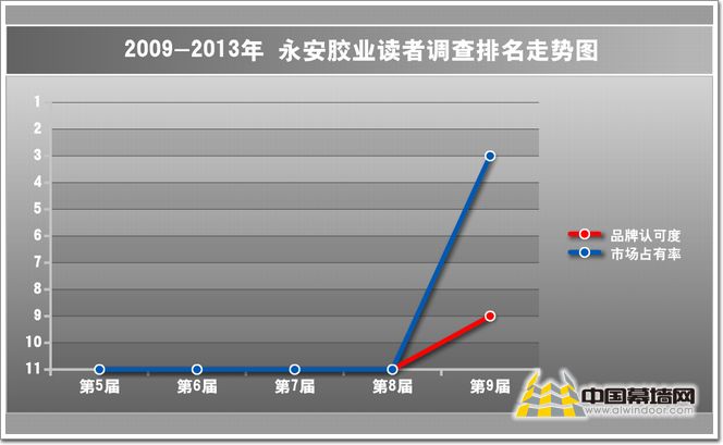 圖8:2009-2013年山東永安膠業(yè)有限公司讀者調(diào)查排名走勢(shì)圖