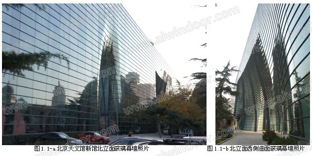 北京天文館異形玻璃幕墻和玻璃旋體,是典型的雙曲面玻璃(詞條“雙曲面玻璃”由行業(yè)大百科提供)幕墻。從工程竣工到現(xiàn)在已有十多年的時間了。位于南、北立面的夾膠中空玻璃雙曲面幕墻和馬鞍形玻璃通道的異形夾膠玻璃面板,已經(jīng)經(jīng)受到了時間的考驗。在該項目的異形幕墻中從玻璃幕墻到玻璃旋體造型。以及玻璃采光頂、屋頂玻璃體造型等相關于異形幕墻的特殊構造節(jié)點有二十種之多。由于節(jié)點設計的比較合理,針對性和可實施性強,對異形玻璃幕墻的結構安裝和面板安裝起到了決定性的作用。使得雙曲面的玻璃造型流暢順滑。