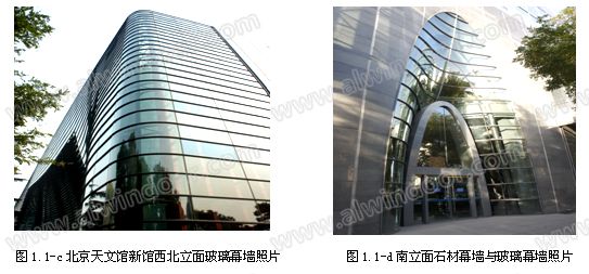 北京天文館新館的建筑位置位于北京市西直門外大街138號,總建筑面積22000平方米.是一個大型綜合性天文館。工程建筑設計由美國王弄極建筑師事物所和中國航天建筑設計研究院聯(lián)合承擔完成。玻璃工程分成三個主要部分:北立面幕墻以及采光頂、馬鞍形玻璃通道、四個空間鋼結構玻璃旋體。無論從設計和施工的技術難度都超乎想象。(如圖1.1-a、b、c、d)
