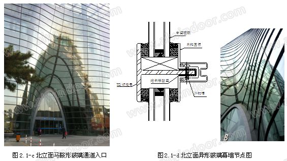 2.1、馬鞍形玻璃通道與南北立面異形幕墻