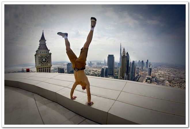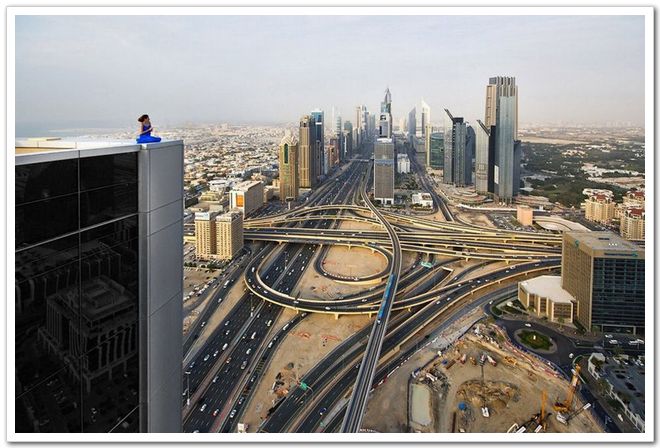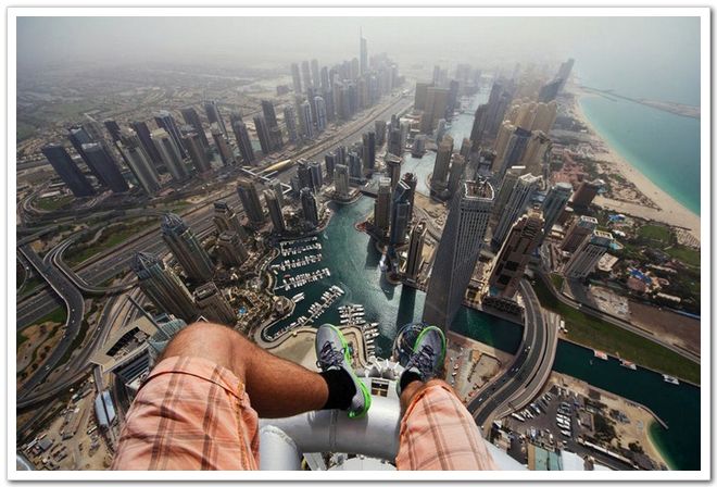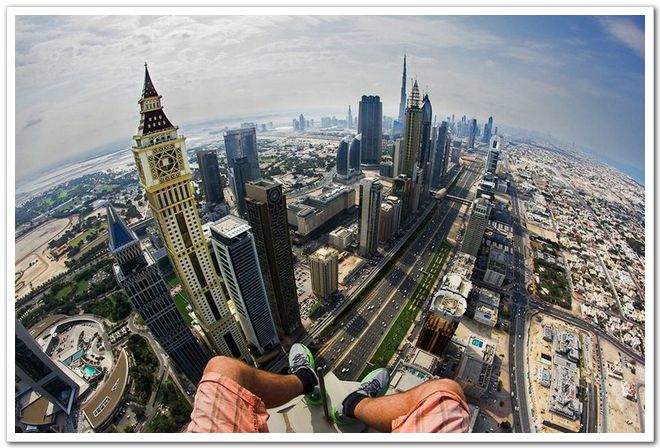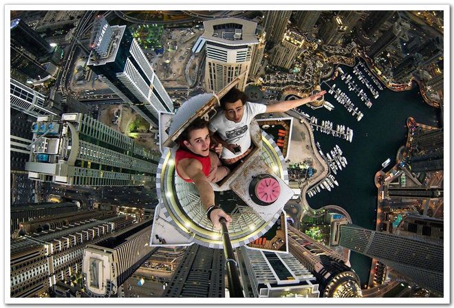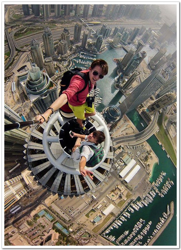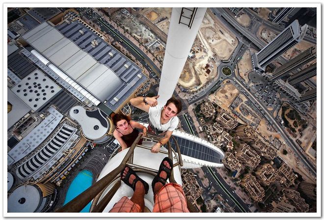 冒險家在迪拜高樓上自拍