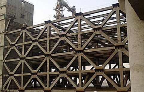 連接體與兩側塔樓采用剛接連接方式,采用主、次桁架的結構形式:沿跨度方向設置2榀主桁架,沿寬度方向設置4榀次桁架托換上部框架,主桁架中部斜腹桿采用屈曲約束支撐(BRB),見圖9,10。連接體采用“液壓同步提升技術”進行整體提升(圖11)。