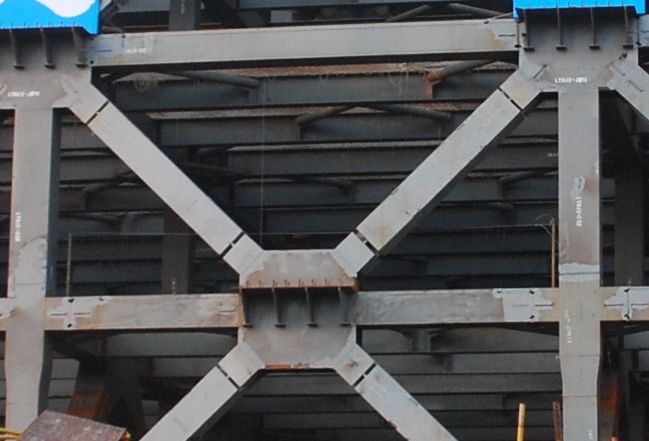 為了減小及控制結構的扭轉振動,在結構中設置了非線性粘滯阻尼器及屈曲約束支撐(圖13,14)。
