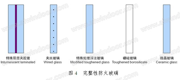 防火完整性的玻璃構造一般是單片玻璃,或者由單片防火玻璃和其他玻璃組合成的不具備防火隔熱性的復合玻璃。常見的單片防火玻璃類型見圖4。
