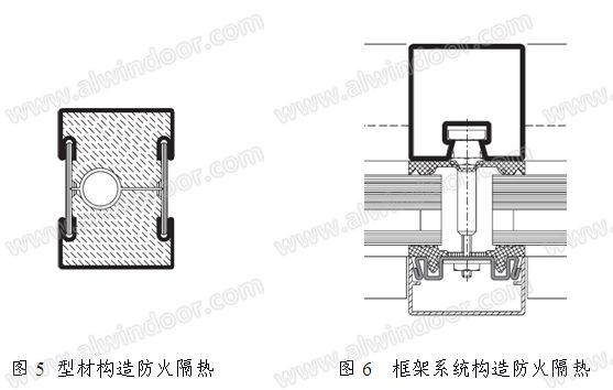 框架系統(tǒng)可以按照防火性能分類也可以按照框架材料分為鋼框架系統(tǒng)、木框架系統(tǒng)。實現(xiàn)框架系統(tǒng)防火隔熱性的手段主要是采用型材構造來防火隔熱(圖5)或者通過系統(tǒng)設計來防火隔熱(圖6)。