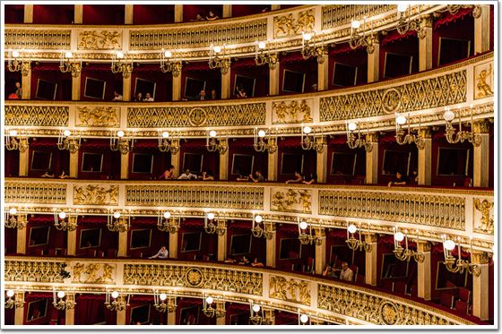位于意大利那不勒斯的圣卡洛劇院,據說是是歐洲現存最古老的持續使用的歌劇院。這座紅金色劇院由波旁王朝的查爾斯王建造,是一座皇室宮殿。劇院于1737年開幕,它開啟的一個標準使后來的建筑爭相效仿。六層的普通包廂圍繞著馬蹄形的貴賓席,劇院后部還有一個寬敞的皇室包廂,裝飾奢華。2010年,劇院的整修花費了幾百萬美元。