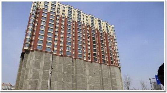 吉林省吉林市長春路臨江廣場附近有這樣一個奇怪的樓宇,外形酷似帆船,下半截完全封閉,上半截正常有居民居住。