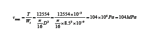 因為扭力是由扭簧傳遞到導向桿,所以導向桿最大扭矩max T=12554N.mm,導向桿直徑D=8.5mm,材料為45#碳素鋼,其 由公式(4)可得出: