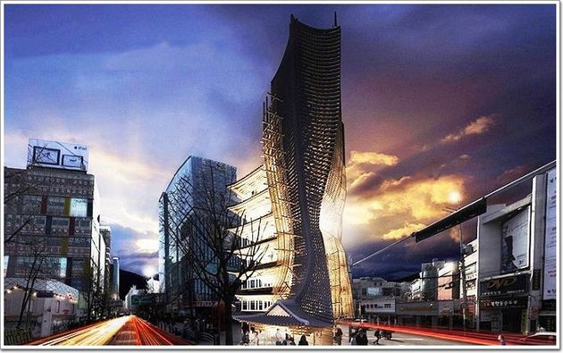 該設計借鑒了韓國傳統房屋Hanoks的外露木結構,不過把傳統房屋中單層飛檐的設計運用到了摩天大樓的每一層中,兼顧了“效用和美觀”。