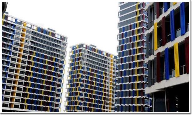 江蘇昆山再現奇葩建筑大樓披上眩目彩條