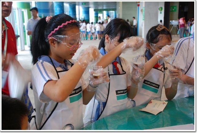 10多名道康寧的員工以及約30名深圳當地的大學生,作為活動志愿者參與了此次科技日活動,指導學生們操作實驗,并提供科技講解。