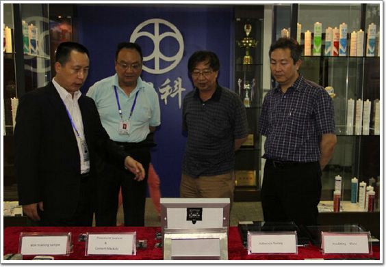 董事長王躍林、市場總監王有強向劉哲秘書長講解硅寶產品應用