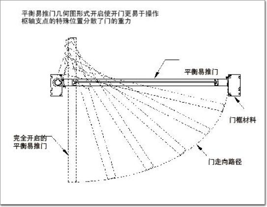 DT平衡易推門的支懸點(diǎn)分散了承重分布,開啟過(guò)程中,約1/3 的門扇能起到導(dǎo)風(fēng)的作用,提供了一種平衡。且風(fēng)速越大導(dǎo)風(fēng)作用越明顯,開啟更省力,讓開門變得容易(見附圖3)。謂之“平衡”門!