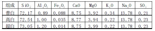 不同透過率玻璃品種的工藝控制是由其工藝特性來決定,以下為普白玻璃、高白玻璃、超白玻璃玻璃成份的對比(%):