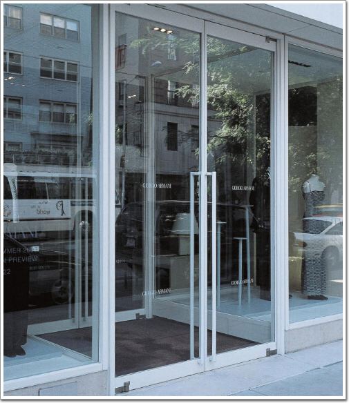 在美國,商業(yè)外圍入口門幾乎全部都是平衡易推門,如:紐約阿瑪尼金品店就成功應(yīng)用了平衡易推門的專業(yè)方案。